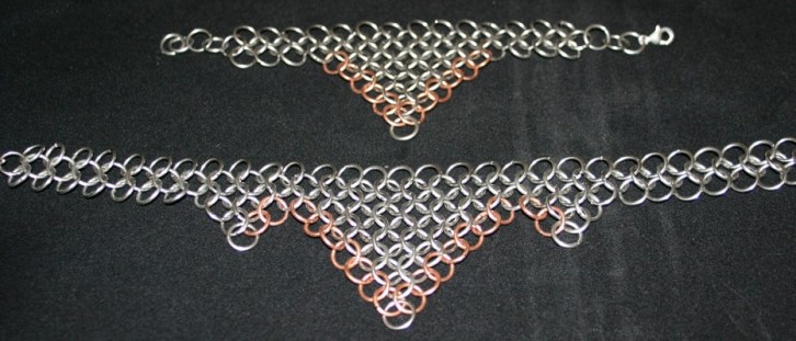 Published November 6, 2011 at 931 × 400 in More stuff! Two tone set Necklace and bracelet set made of large stainless and copper coated mild steel rings ← Previous Next →
