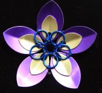 - 3 layer flower, purple, gold and green with blue rings, aluminium
