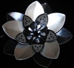 - 3 layer flower, black, silver and celtic etched black with blue rings
