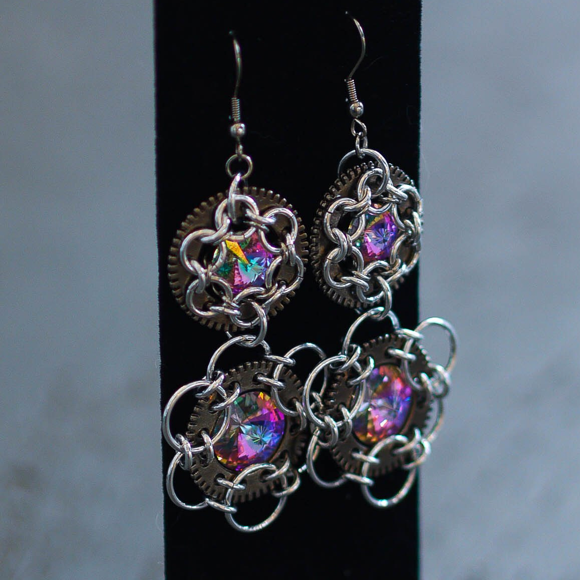 Aluminium rings and Swarovski crystals