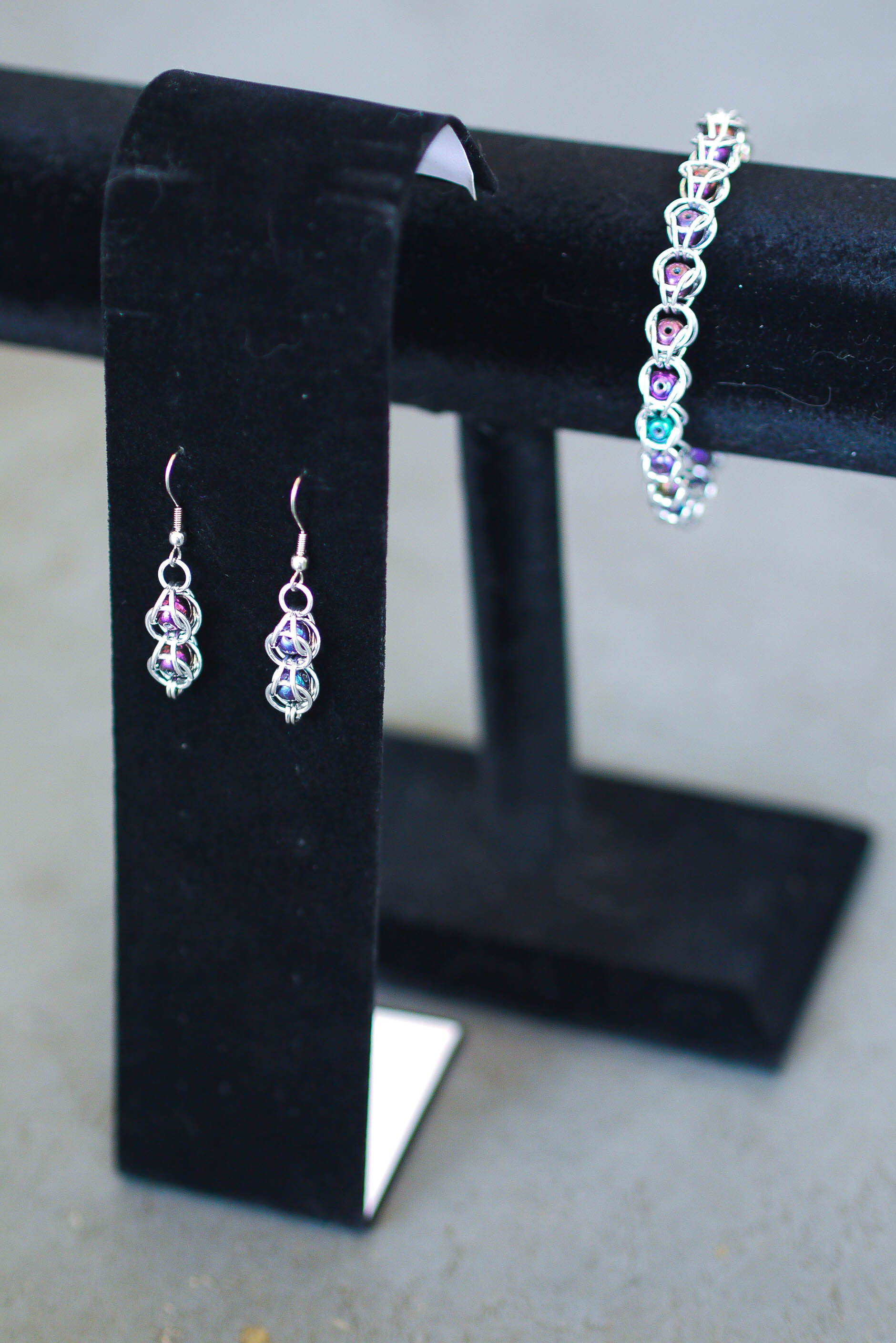 Published January 4, 2018 at 1880 × 2816 P1310309 Aluminium rings and glass beads, Earrings and bracelet set