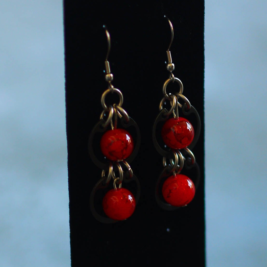 Stainless rings and circlips, and red glass beads