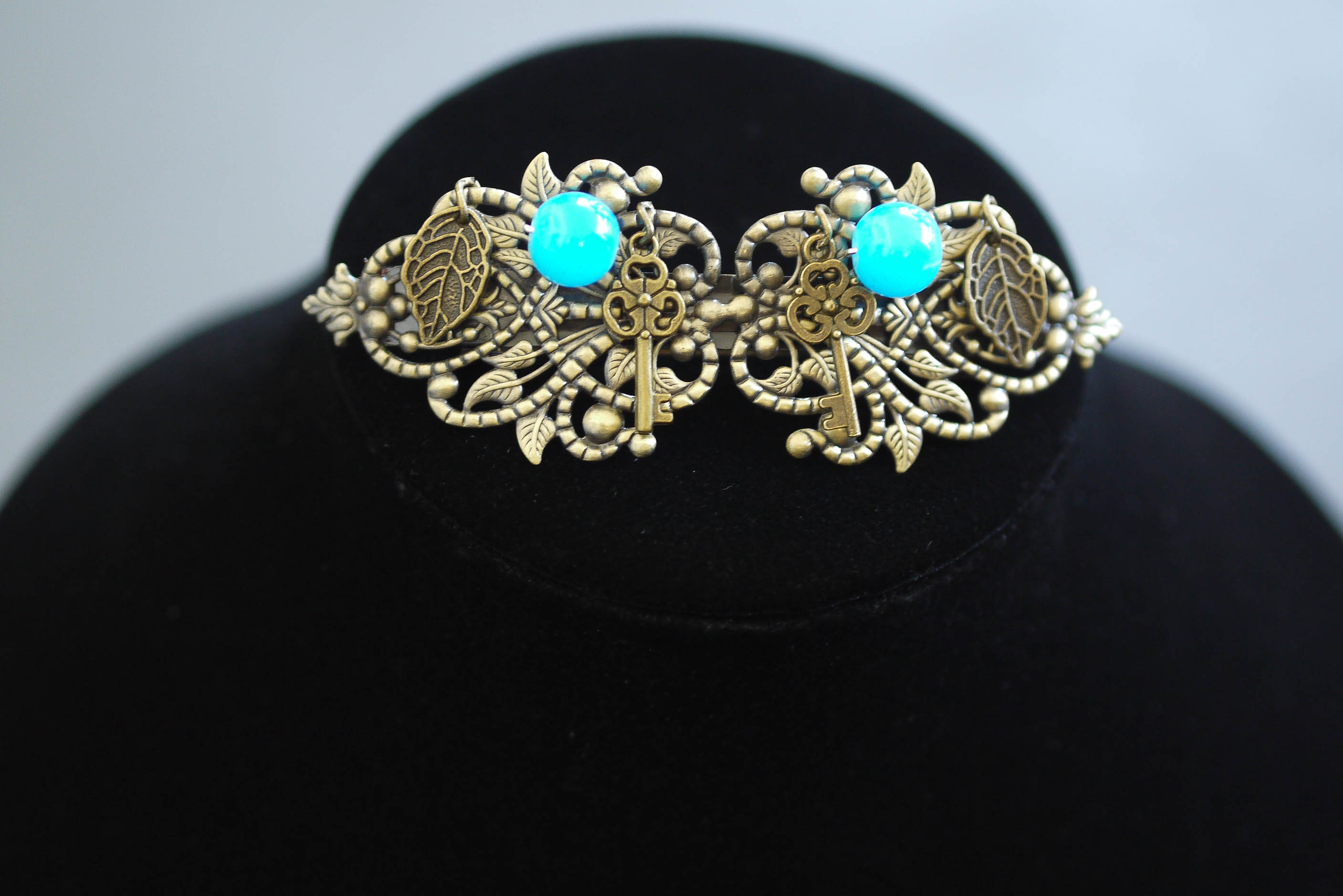 Published January 4, 2018 at 2816 × 1880 P1310416 Brass steampunk hair clip with blue glass beads (barette)