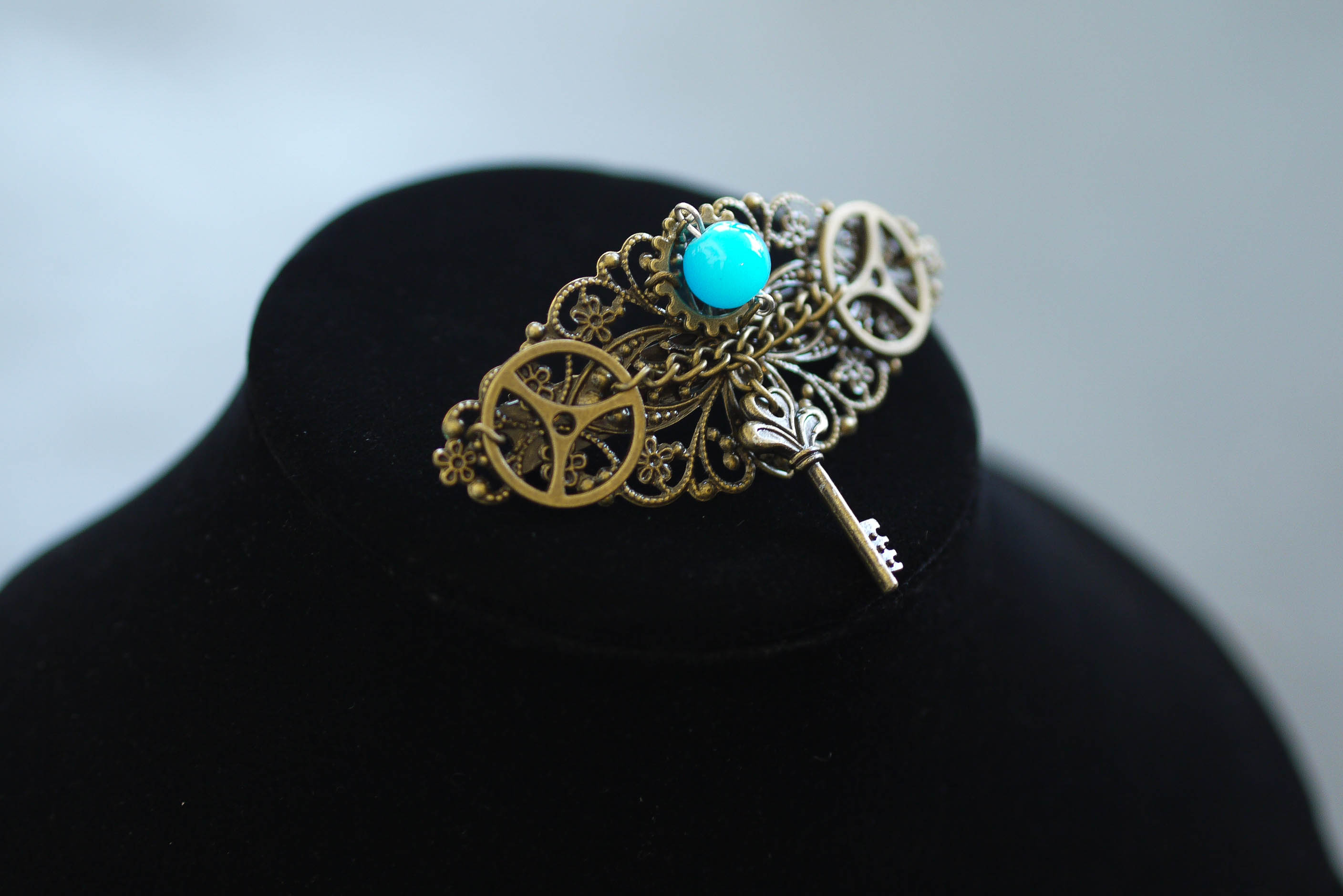 Published January 4, 2018 at 2816 × 1880 P1310419 Brass steampunk hair clip with blue glass bead (barette)